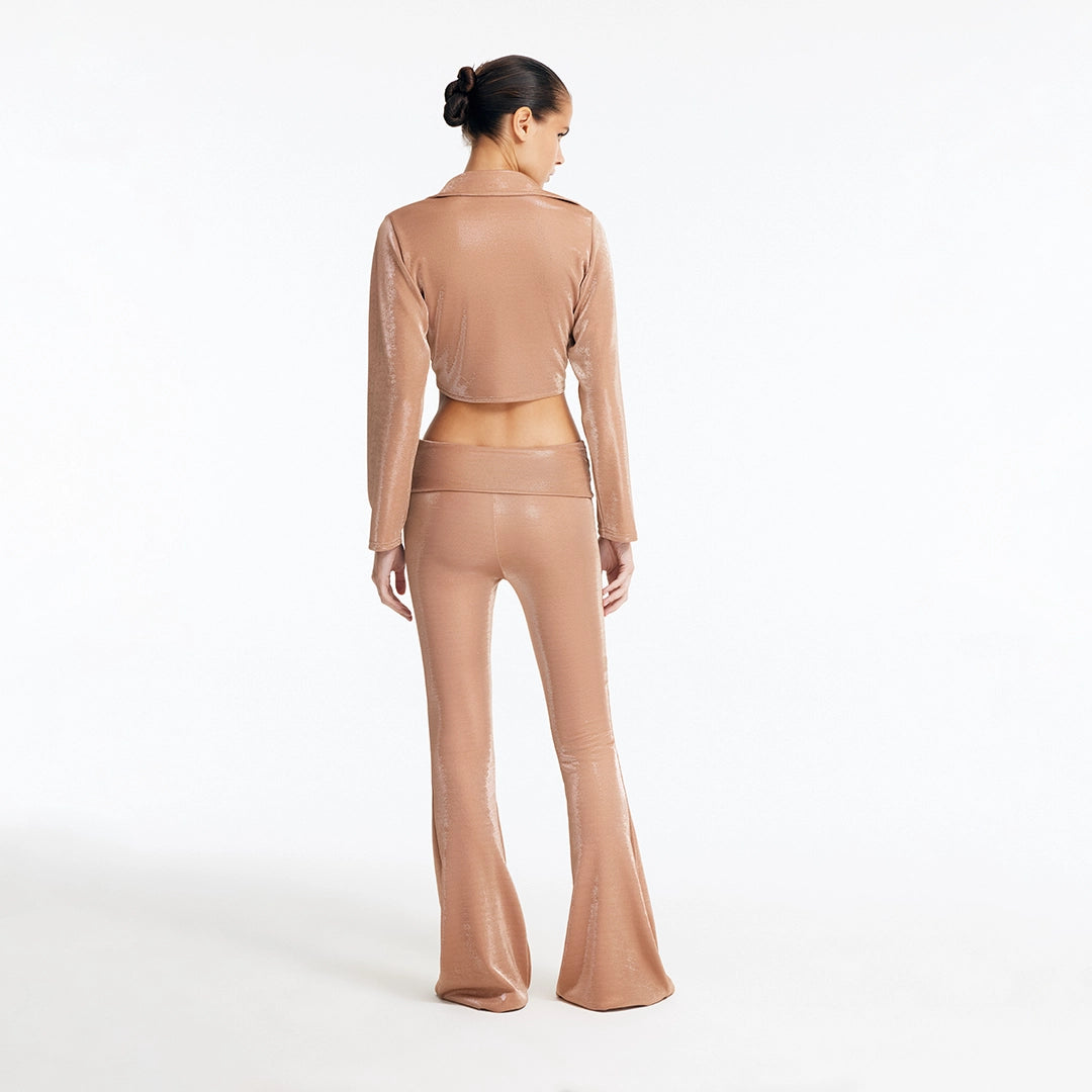 Greta Bronze Long Sleeve Tie Front Shirt and Izara Mid-Rise Flared Pants