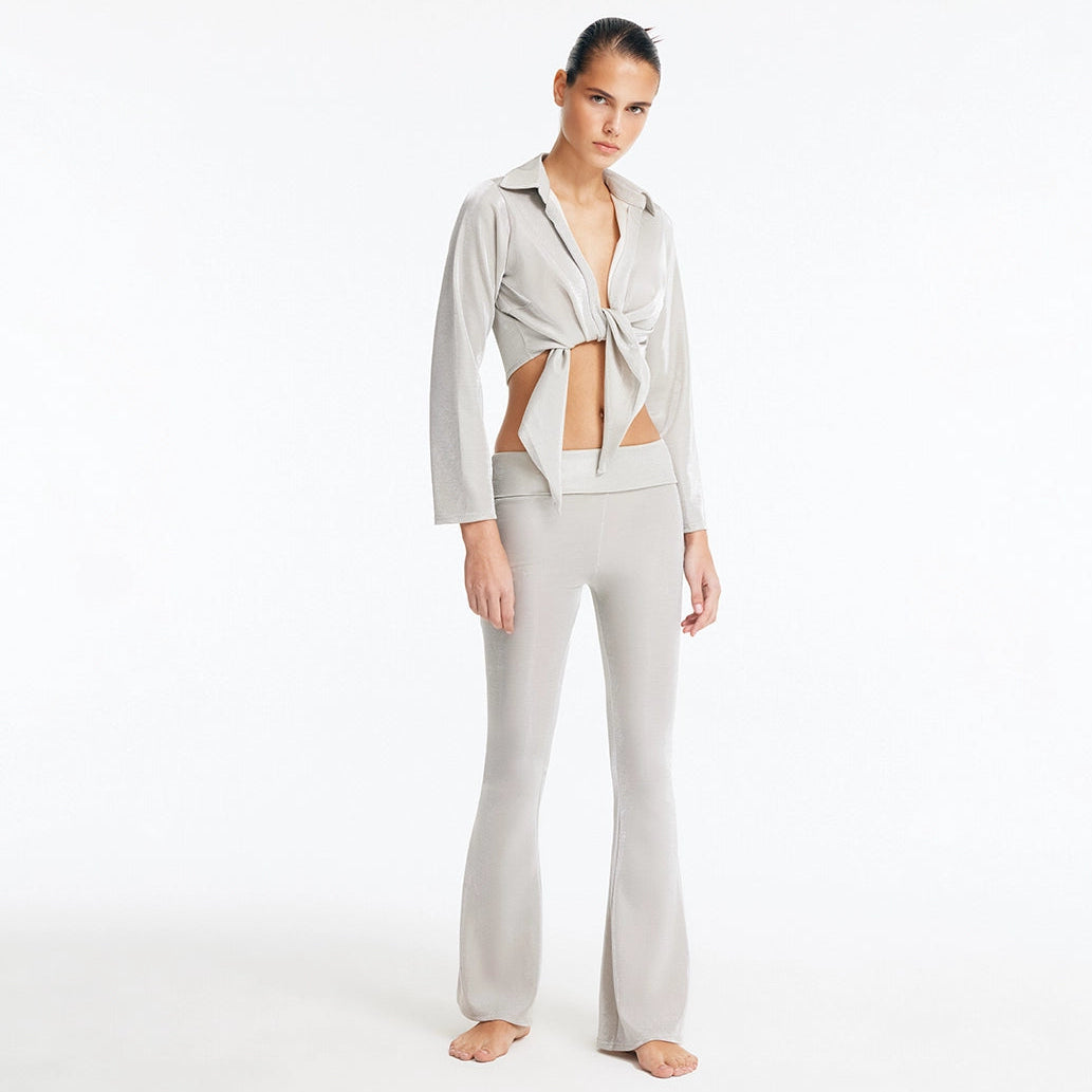 Greta Silver Long Sleeve Tie Front Shirt and Izara Mid-Rise Flared Pants
