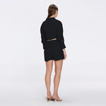 Introducing our Masha black shorts, a masterstroke of relaxed elegance that harmoniously blends the charm of tailoring with the comfort of leisurewear. These shorts are the sartorial solution you've been searching for when the mercury rises.