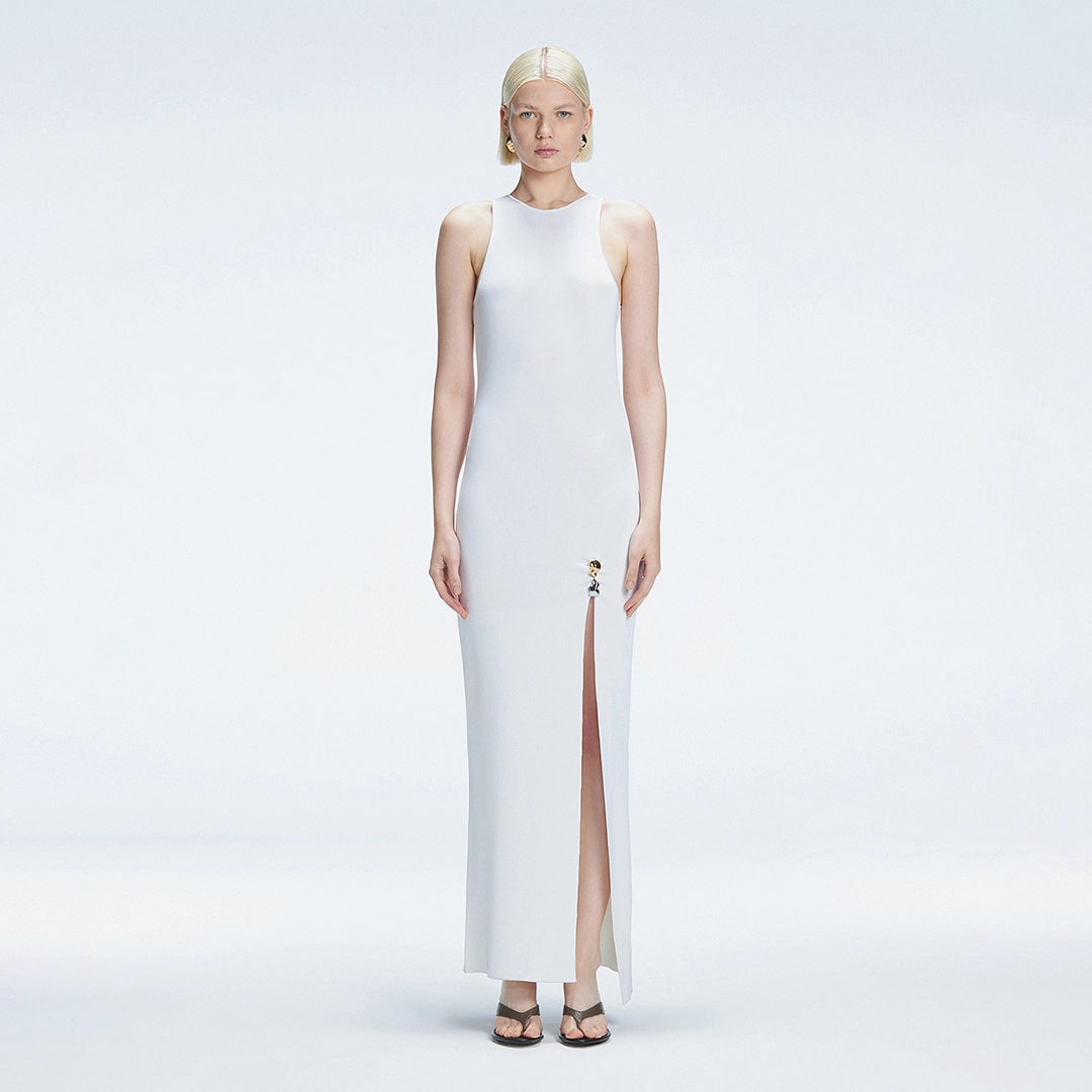 Louisa White Halter Knit Maxi Dress with Slit Detail