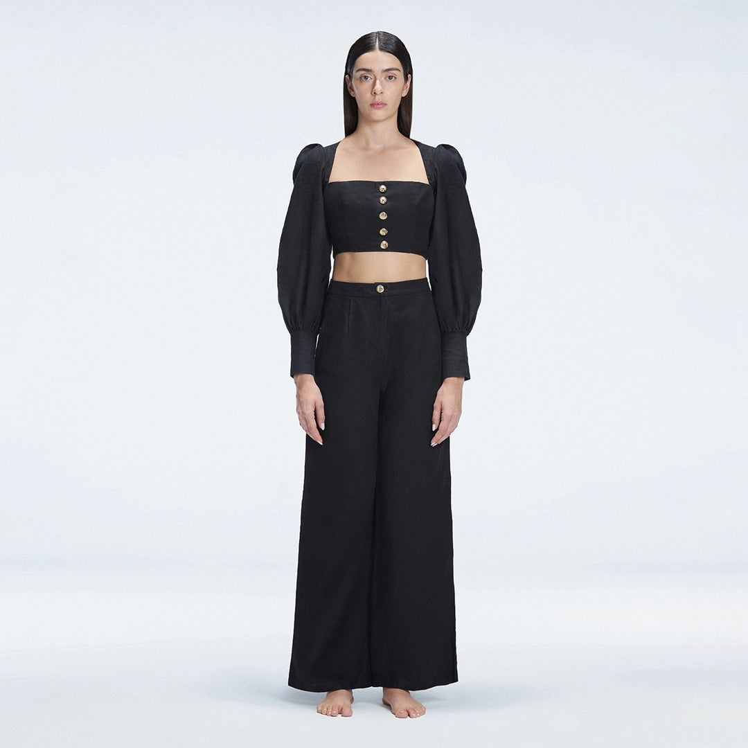 Gemma Black Linen Square Neck - Long Sleeve Crop Top | Moeva | Top | Each week unveils new pieces—luxury swimwear, fluid resort silhouettes, and elevated summer-to-evening essentials designed to carry you from coastal escapes to city nights.