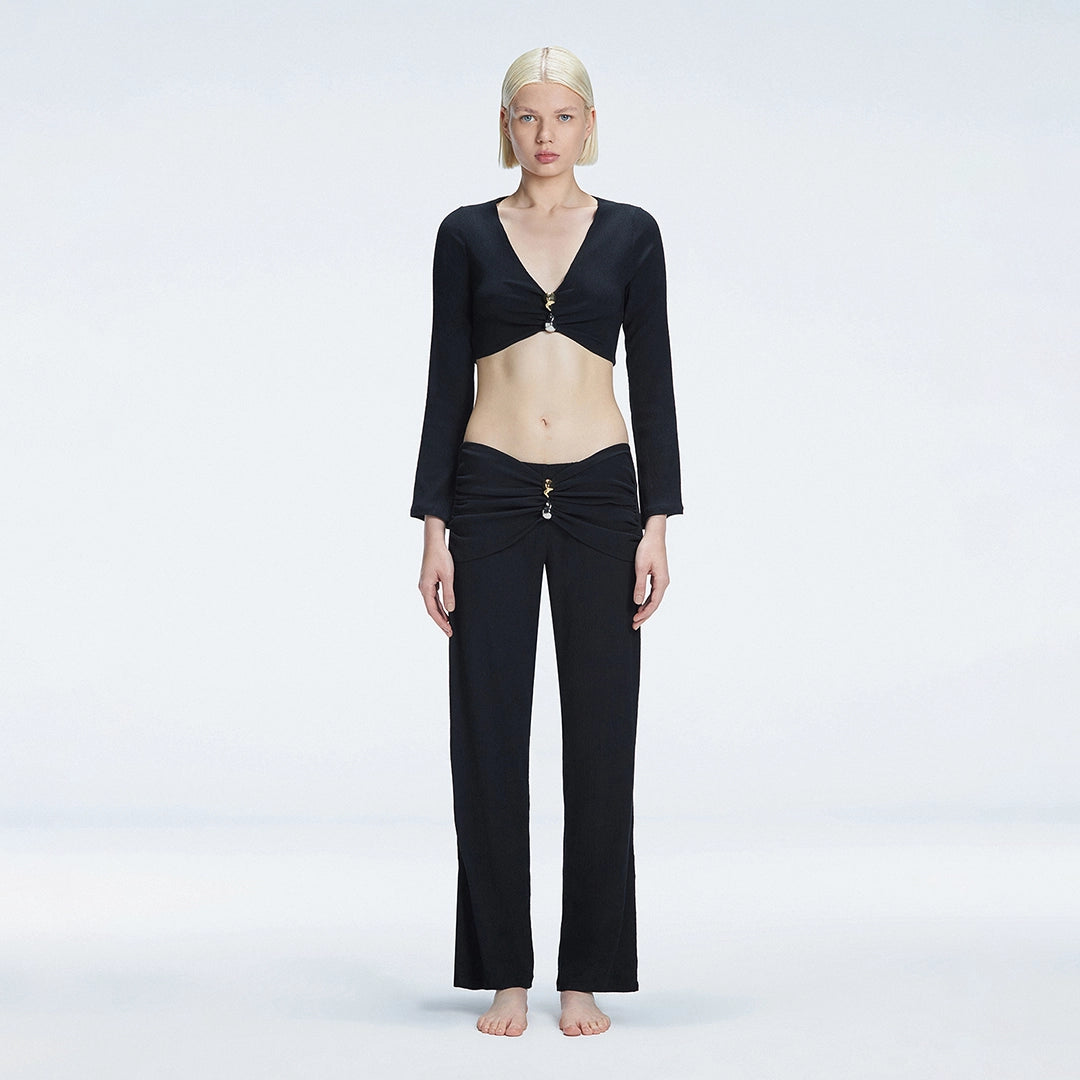 Sirenia Black Long Sleeve Accessory-Detail Crop Top