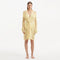 Tata Blue Sheer Gold Buttoned Belted Kaftan with Asymmetric Hem