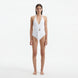 The Imelda white one-piece swimsuit tummy control with a gold accessory accentuates your figure and provides a slimming effect. The luxury reinterpretation of the halter neck swimsuit is both comfortable and beautiful. The Imelda white one-piece swimsuit ties at the neck and allows an adjustable fit for the chest and cleavage. The moderate V-neckline will flatter your décolleté and enhance your cleavage gracefully. The Imelda white swimsuit with removable paddings is very comfortable and provides full bottom coverage.
