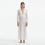 Fernanda White Knitted Mesh Long-Sleeve Maxi Dress