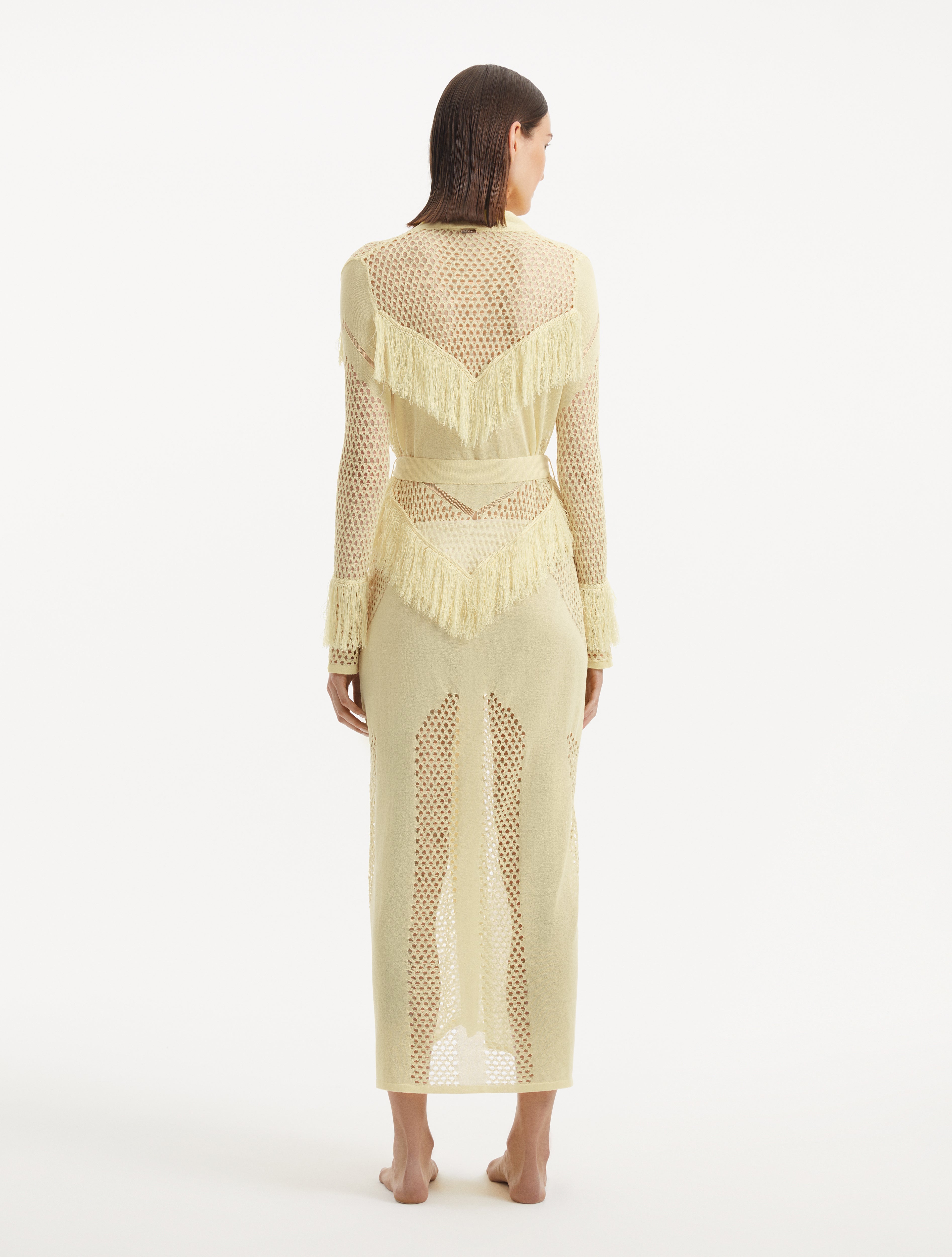 Itzel Yellow Knitted Mesh Long-Sleeve Kaftan