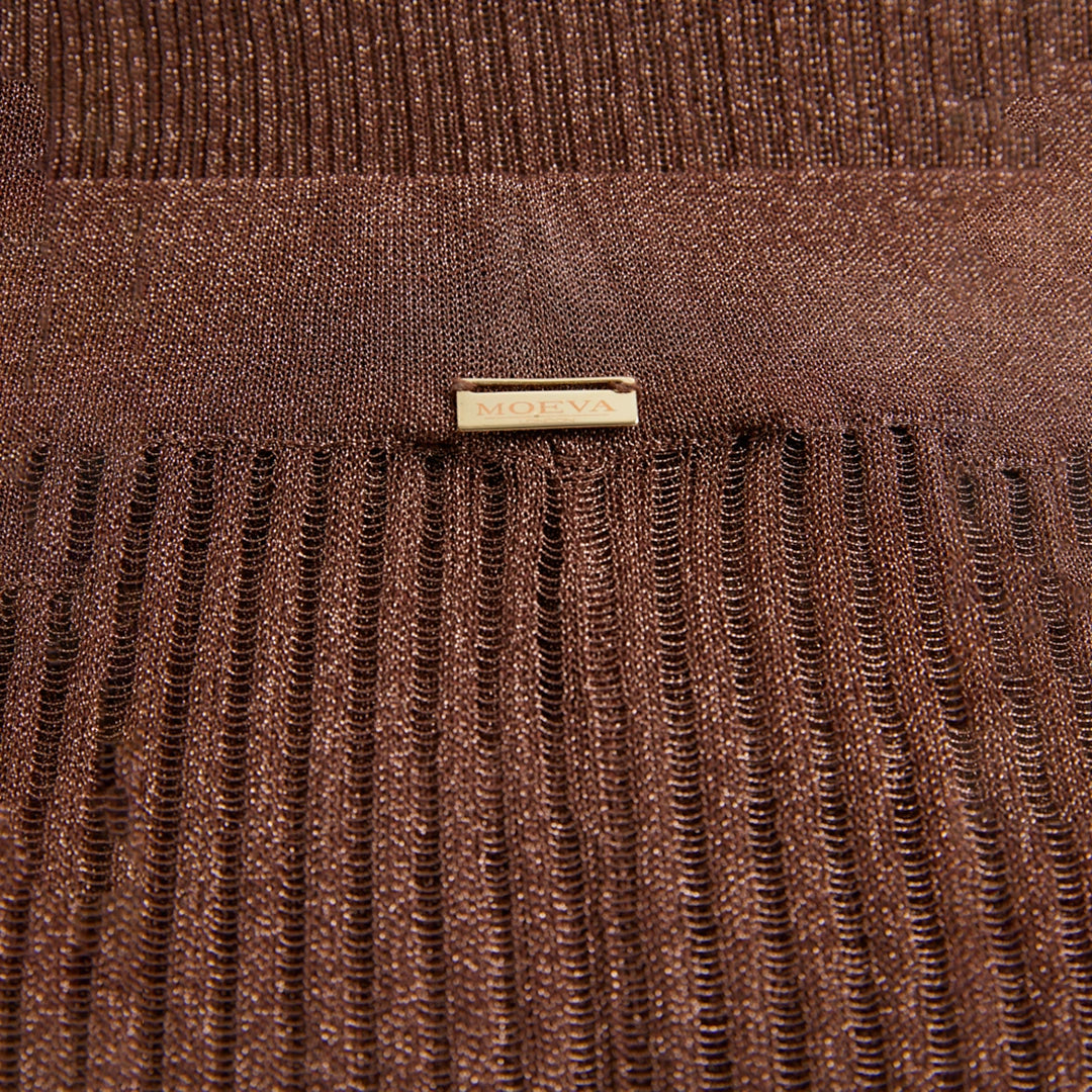 The mood to wear shiny and sparkly pieces doesn’t have to be reserved for festivity seasons, night life or red carpets any more. Let’s make summer the glitz and glamour season and evoke that festive feel with shining outfits at the beach. Just make sure that the Luz brown knitted low-rise metallic pants is on top of your shopping list this summer to look like a million bucks.