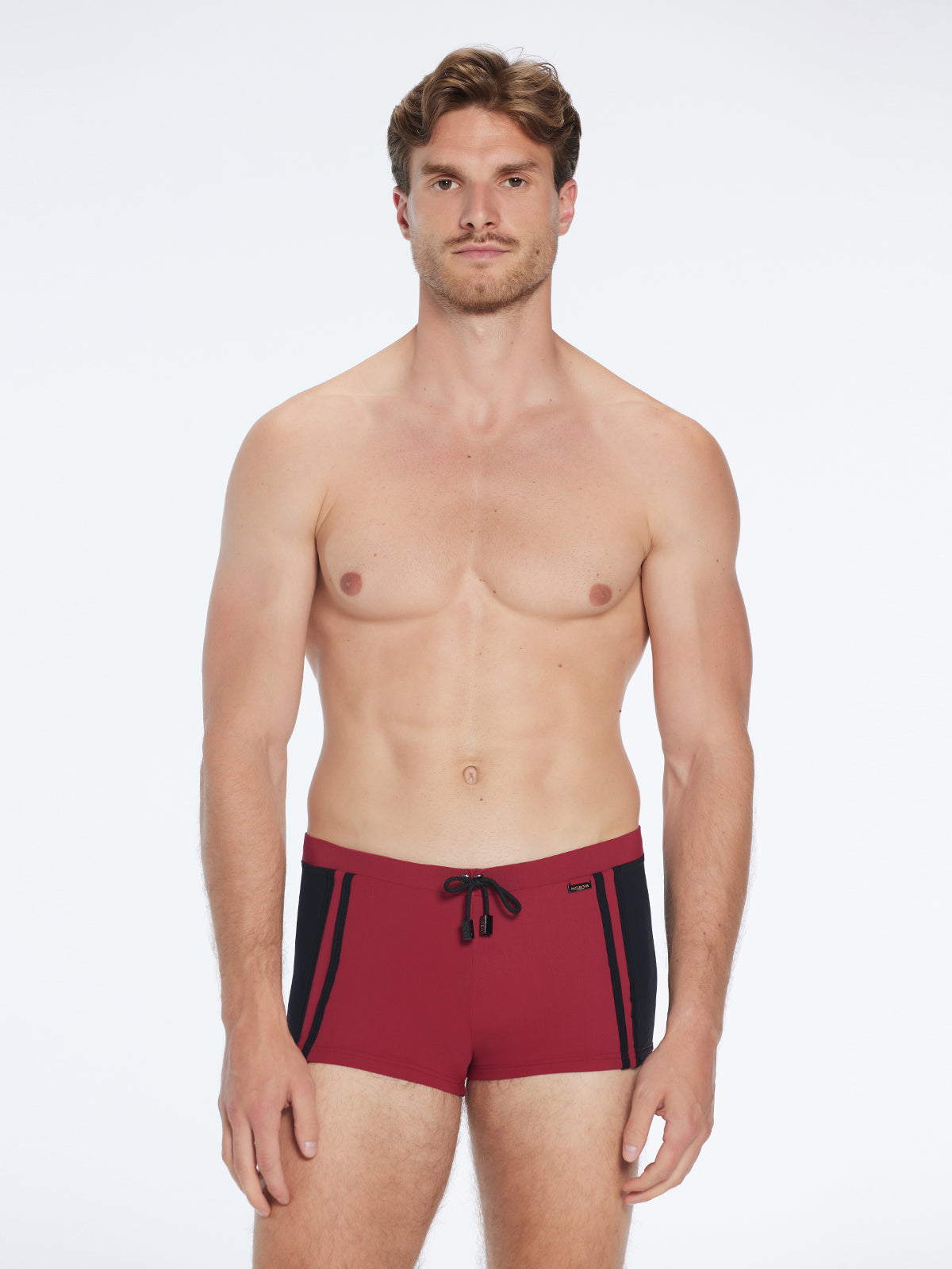 If you like your swimwear short and fitted, the Antonio bordeaux/black trunks are the perfect choice. Soft, stretchy, fully lined, and quick-drying, they hug the body like a second skin while the drawcord waistband ensures a secure fit and a sculpted look.