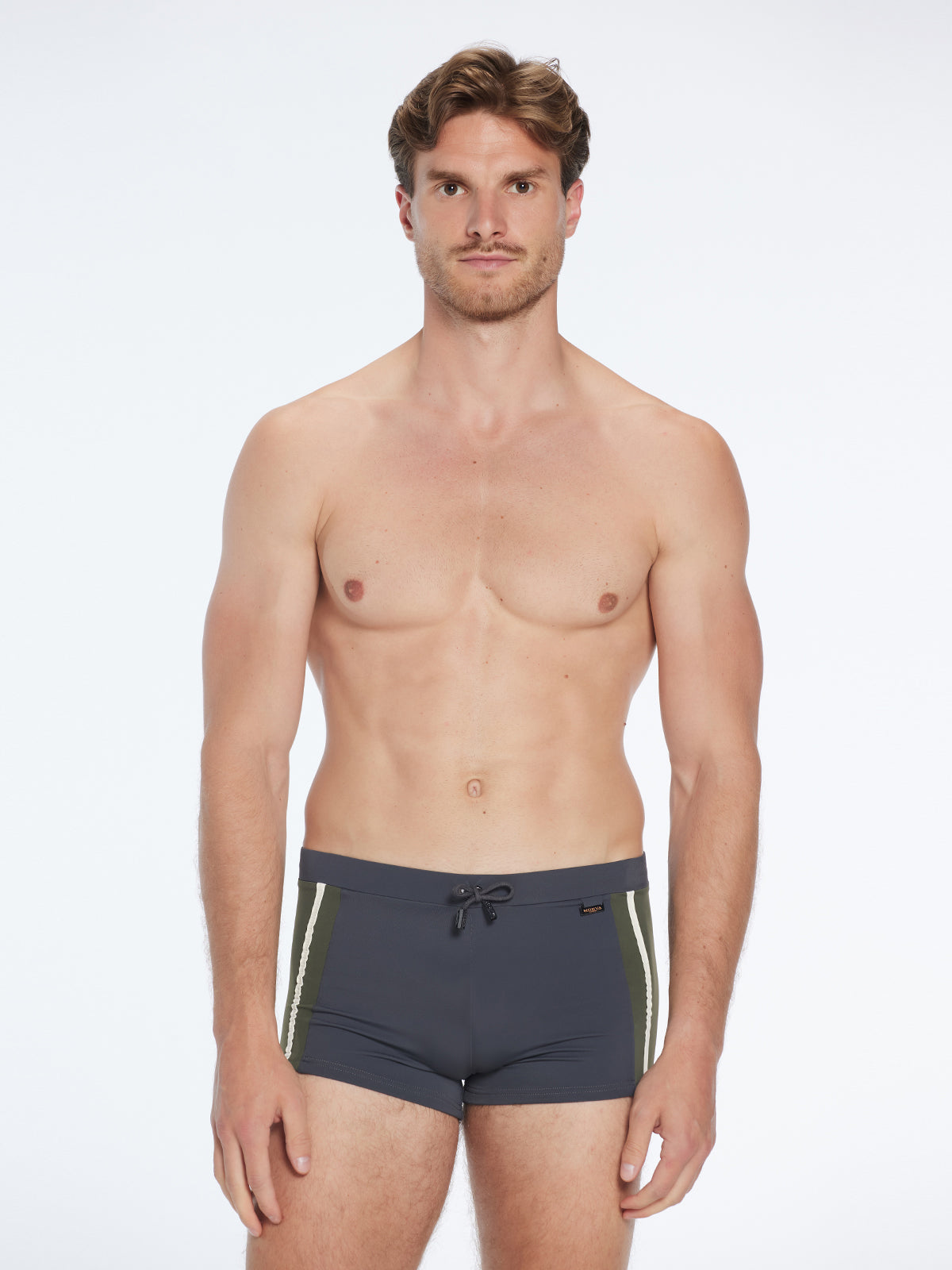 If you prefer your swim shorts short and fitted, the Antonio grey/green/white trunks are made for you. Soft, stretchy, fully lined, and quick-drying, they hug the body like a second skin while the drawcord waistband ensures a secure, sculpted fit.