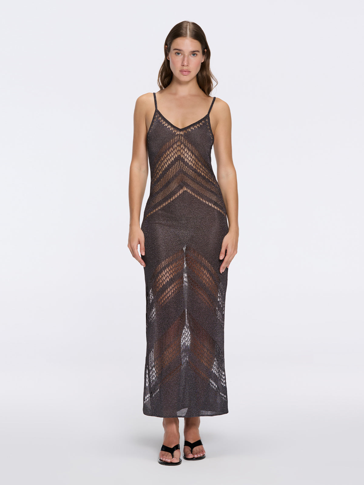 Beaulieu Black Metallic Knit Maxi Dress with V-Neckline and Side Slit | Moeva | Dress | Each week unveils new pieces—luxury swimwear, fluid resort silhouettes, and elevated summer-to-evening essentials designed to carry you from coastal escapes to city nights.