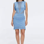 Diani Baby Blue Fringe Detail Sheer Panel Open Back Mini Dress