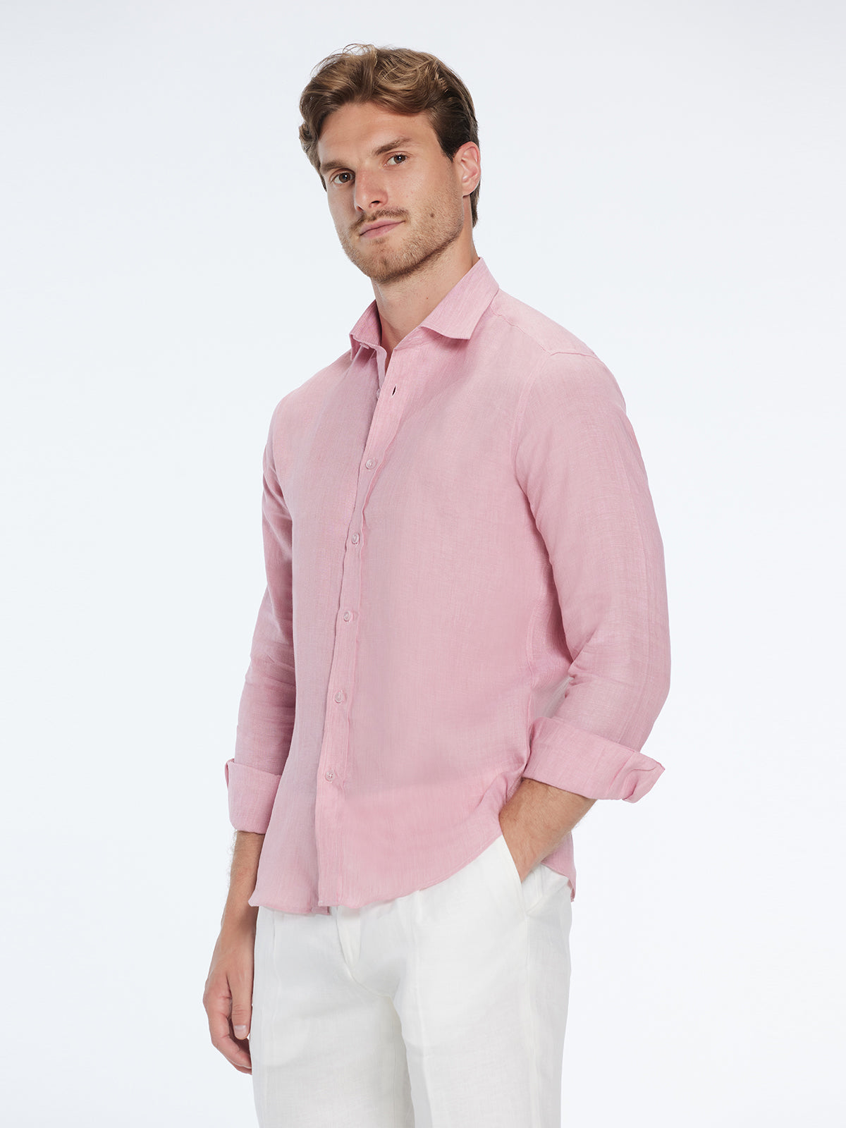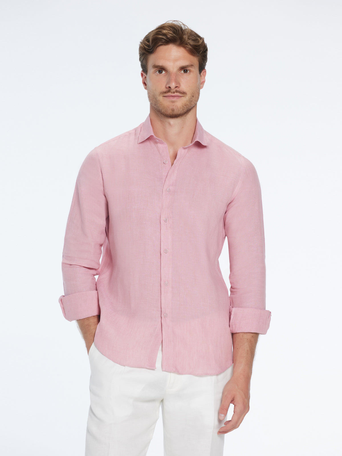 Harry Pink Linen Shirt with Spread Collar