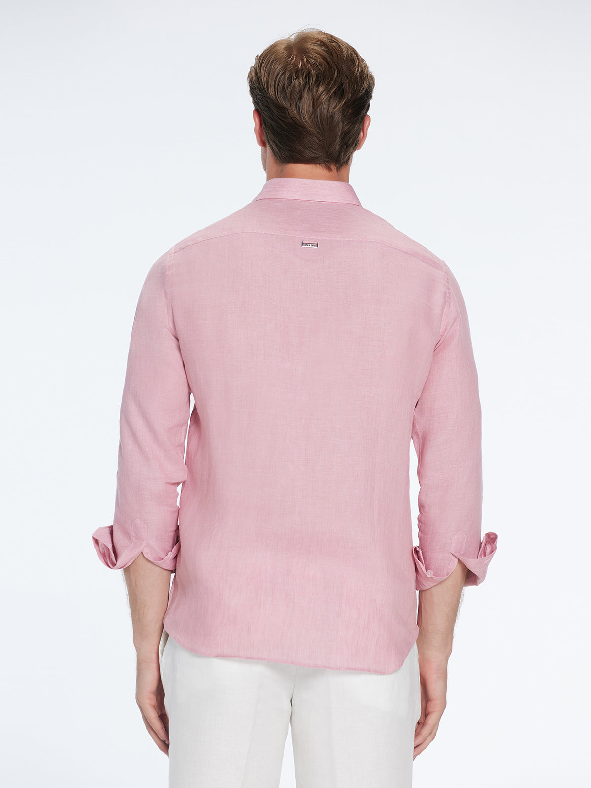 The pink Harry shirt is a warm-weather essential, offering effortless elegance in a breathable cotton–linen blend. Its slim shoulders, relaxed torso, and lightweight feel make it perfect for long summer evenings.