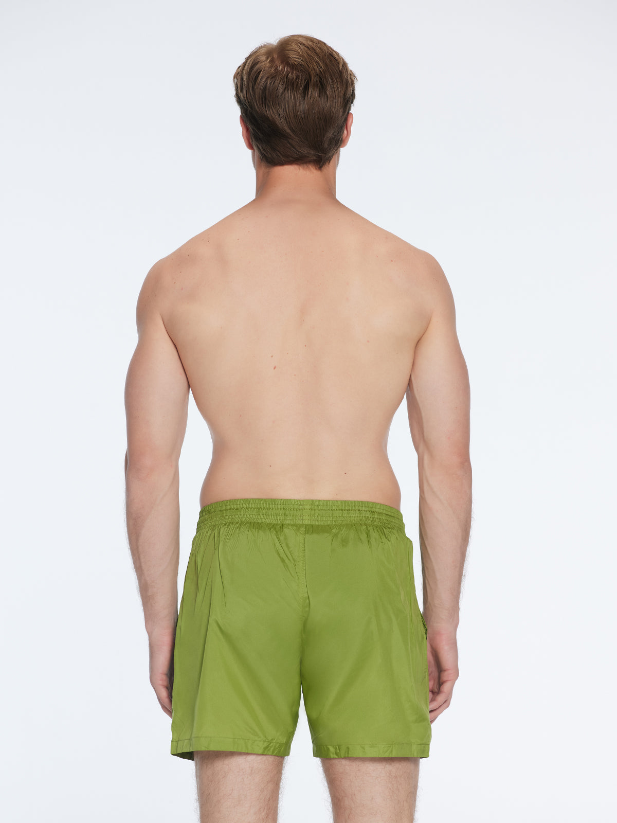 Louis was the first-ever short for men Moeva created. The Louis olive green mid -thigh length men swim shorts with a drawstring provides a comfortable and secure fit. Louis provides the perfect balance between style and comfort. Made for elegant men, it is a refined take on traditional men's swimwear. It is luxuriously tailored with exceptional craftsmanship which capture Moeva’s elevated brand image and aesthetic. The fabric is ultra-light with a subtle shine adding vibrancy and elegance to the simple design. The fabric is extremely quick drying and water repellent. It has a soft net lining for a comfortable fit and freedom of movement. The elastic waistband makes it sit on your waist perfectly while also making it easy to wear. The drawstrings are embellished with black nickel stoppers, and a Moeva patch is added to the front. It has two open pockets at both sides for you to keep your essentials. Don’t forget to empty your pockets before dipping into the water.