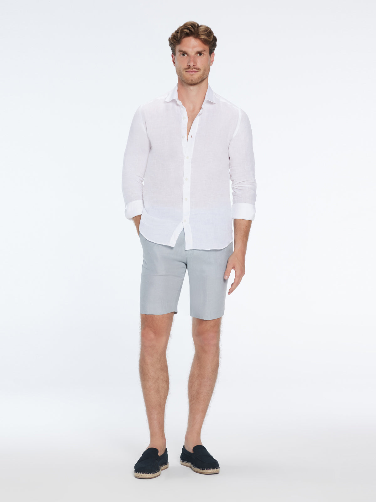 Linen shorts are timeless for a summer wardrobe for men. You can wear it at both casual and formal occasions without an issue.The Marco shorts will keep you cool during the summer months. Cut from breathable and soft linen fabric, Marco has a mid-rise, regular fit, and straight-leg design. Neatly tailored, these shorts are shaped with pleats at front, slip pockets at sides, buttoned welt pockets at back, concealed zip fastening, and adjustable waist tabs.