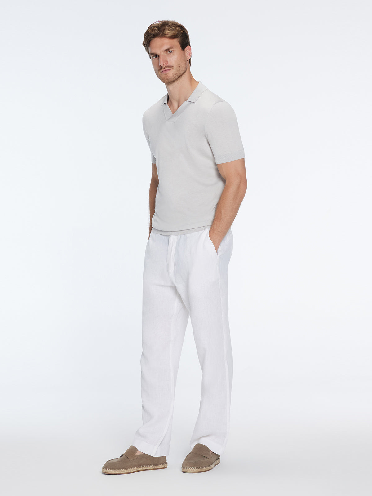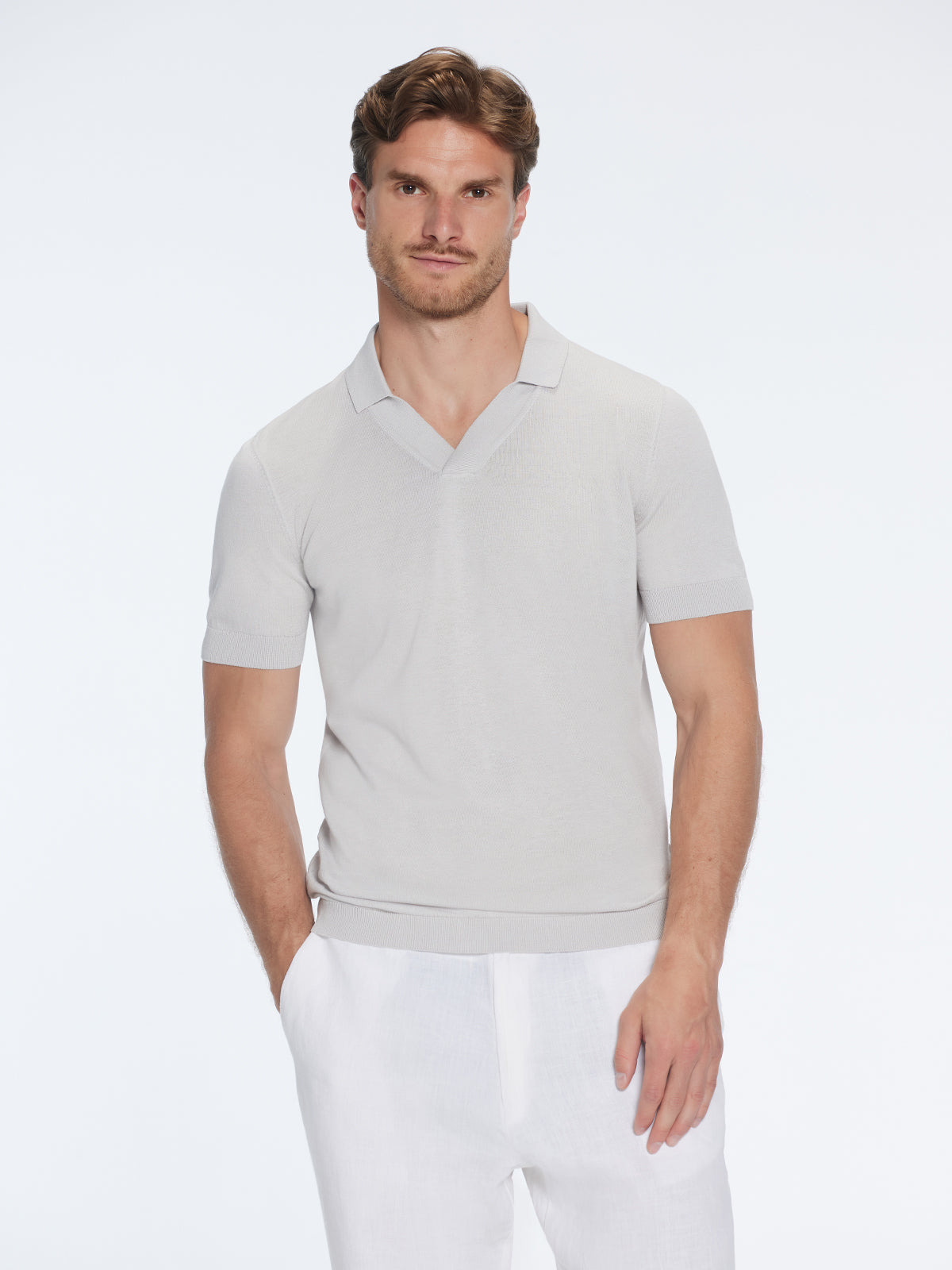 Crafted from a luxurious blend of cotton and silk, the Mark t-shirt offers a tactile experience that's unparalleled. This unique combination results in a fabric that's gentle against your skin and subtly opulent, exemplifying the art of seamlessly intertwining comfort and style.With a slim fit silhouette, the Mark t-shirt accentuates your form with a contemporary and tailored appearance. This modern fit exudes confidence and panache, showcasing your distinctive sense of fashion.The open collar design of the Mark" t-shirt adds a touch of distinction to your ensemble. The collar frames your neckline with a hint of relaxed sophistication, striking a perfect balance between casual ease and refined elegance.Now, envision the Mark grey t-shirt seamlessly harmonizing with your favorite jeans or shorts—a symphony of creativity and style that captivates effortlessly. The short sleeves of the t-shirt meld harmoniously with the laid-back charm of your chosen bottoms, creating a cohesive and versatile ensemble.