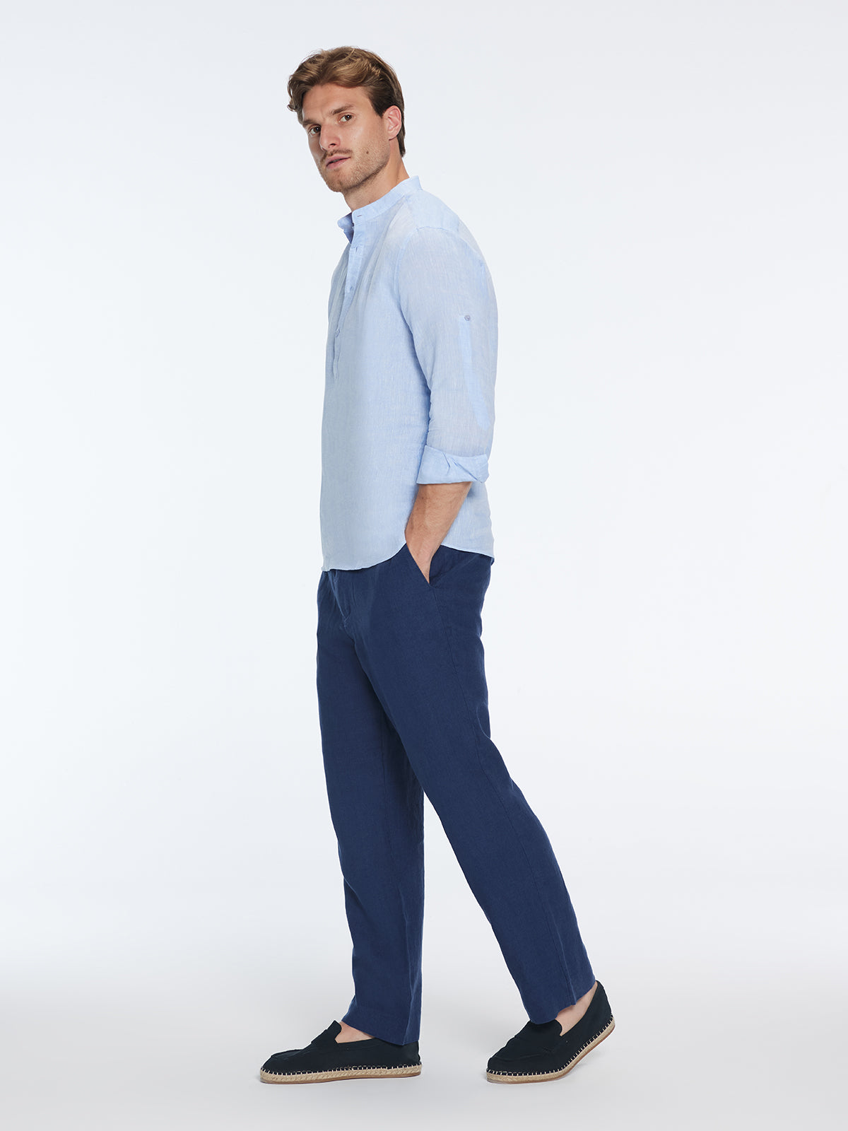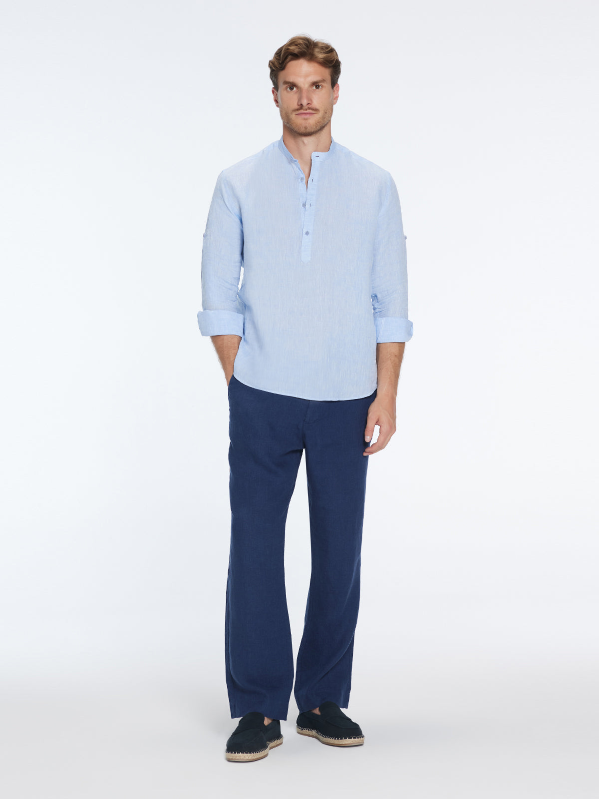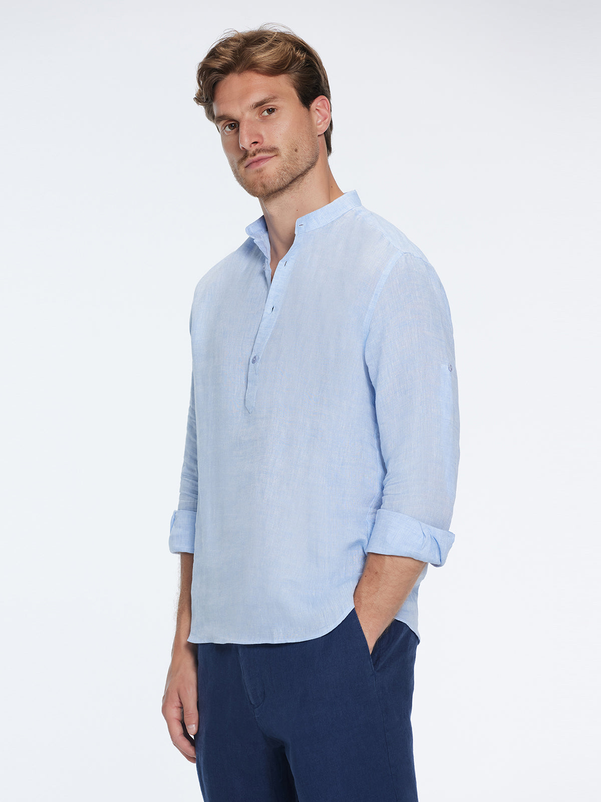 Linen shirts are a summer essential—lightweight, breathable, and effortlessly stylish. The baby blue Matteo shirt features a slim fit, spread collar, and long sleeves, making it perfect for beach days, evenings out, and warm-weather dressing. Comfortable and versatile, it’s an ideal addition to any holiday wardrobe.