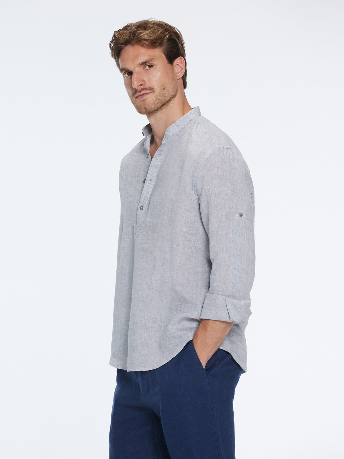 Linen shirts are a summer essential—lightweight, breathable, and effortlessly refined. The grey Matteo shirt features a slim fit, spread collar, and long sleeves with buttoned cuffs, making it perfect for warm days and relaxed nights. Stylish, versatile, and easy to wear, it’s a must-have for any holiday wardrobe.