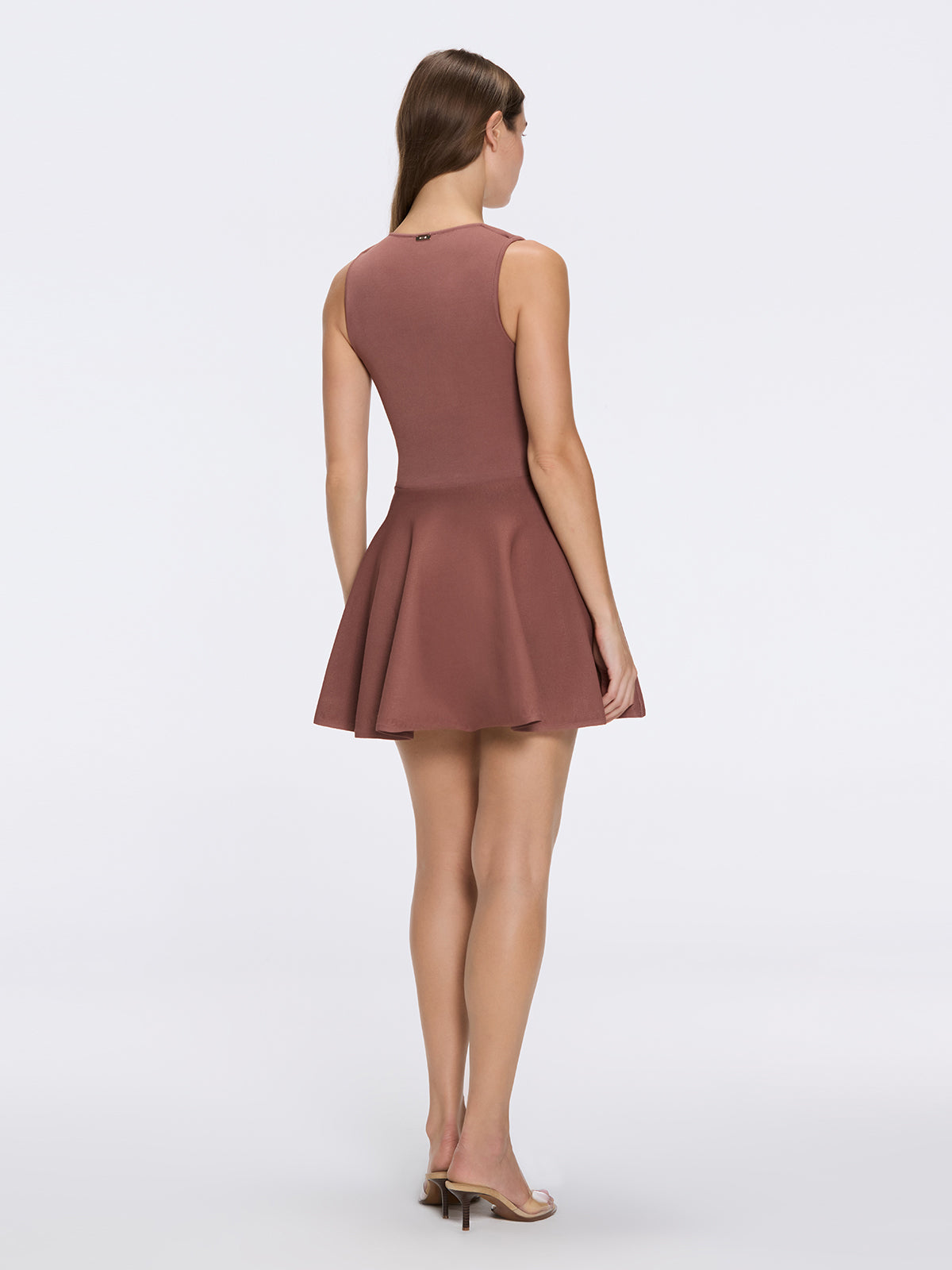 Meditara Brown Knit Mini Dress with Flared Skirt and Gold Button Details