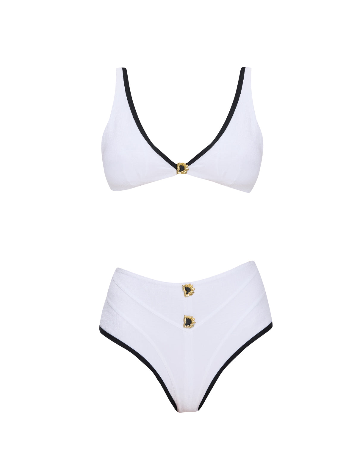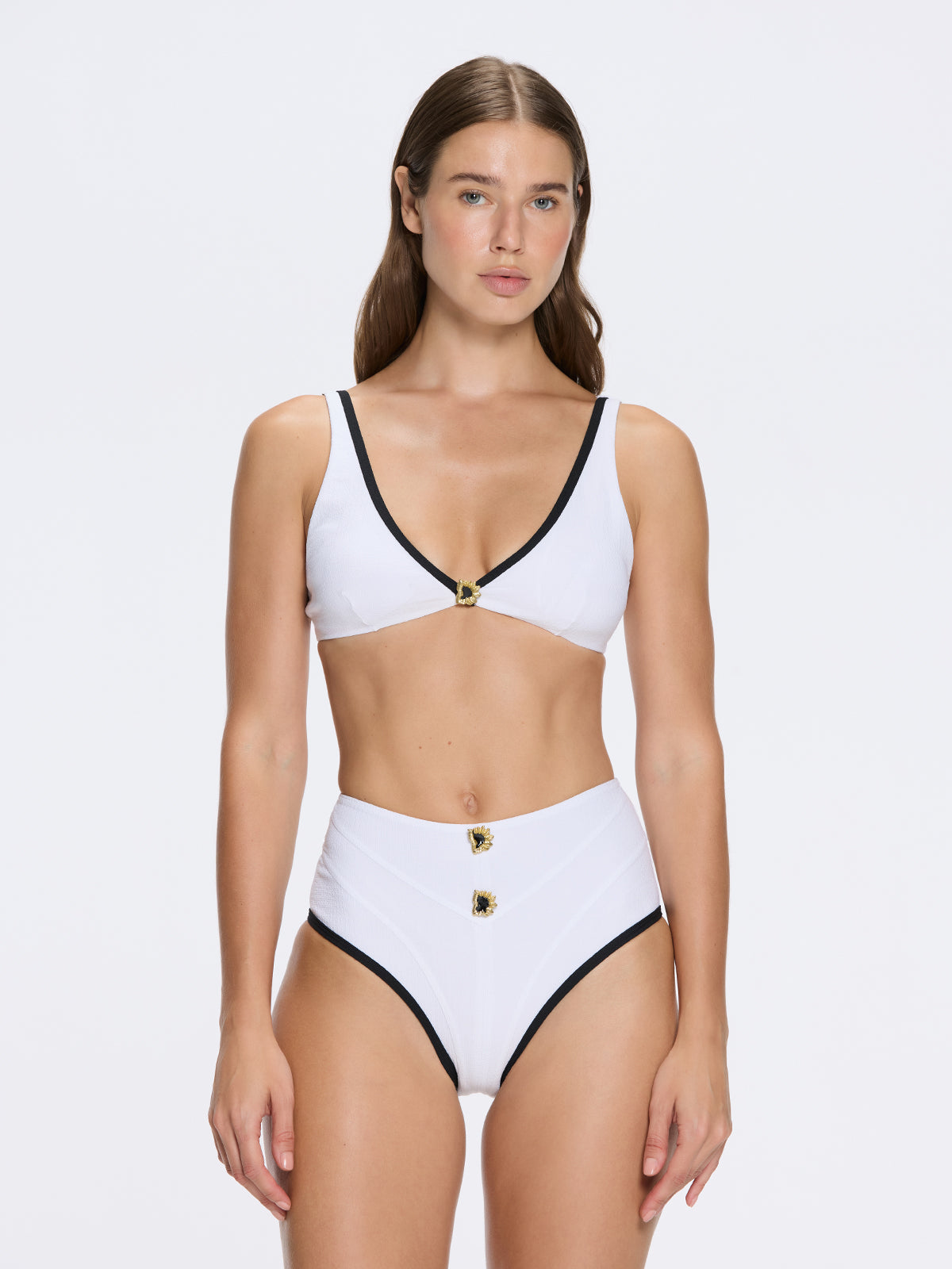 Merrin White-Black V Neck High Waist Textured Bikini Set | Moeva | Bikini Set | Each week unveils new pieces—luxury swimwear, fluid resort silhouettes, and elevated summer-to-evening essentials designed to carry you from coastal escapes to city nights.