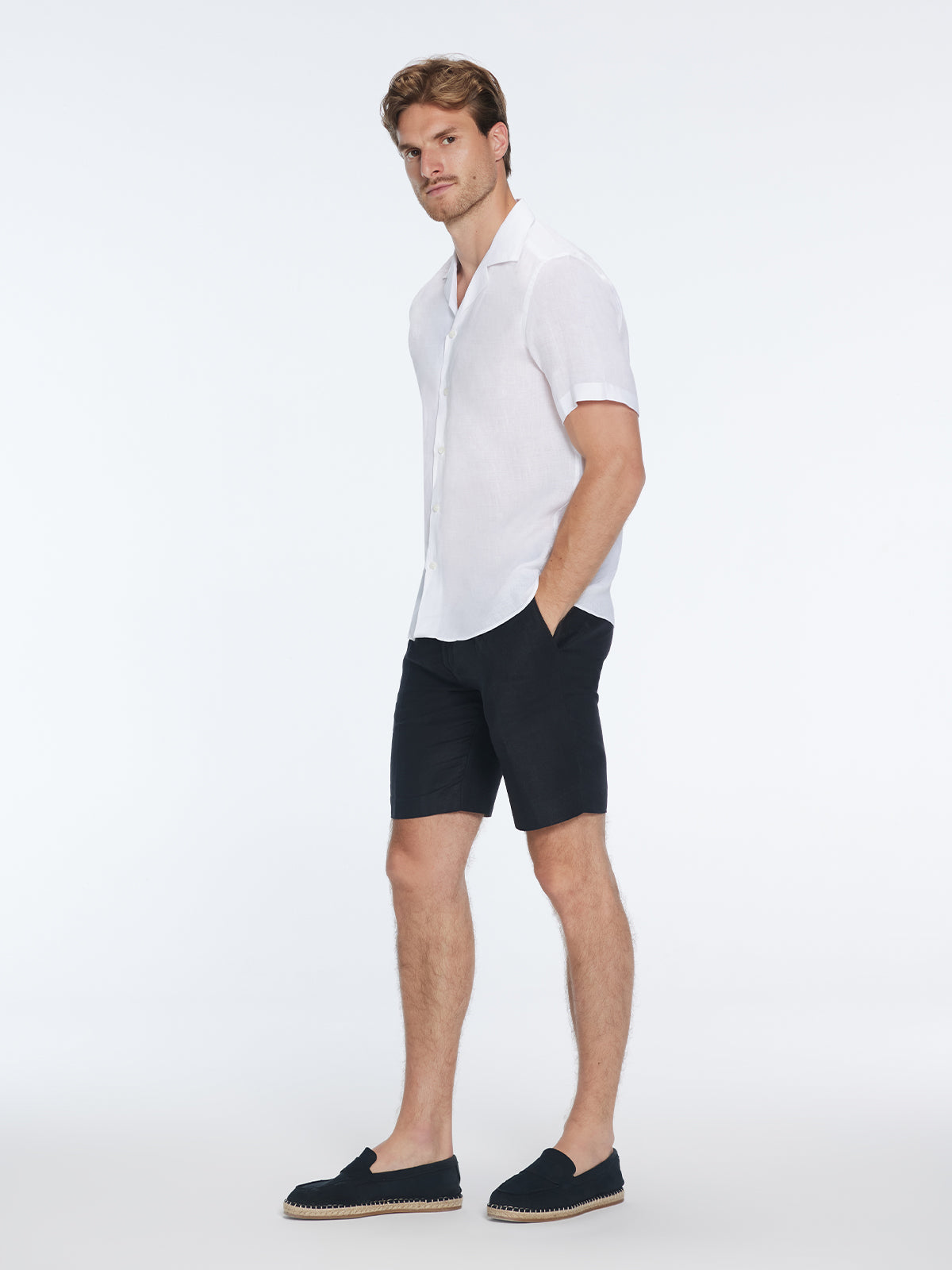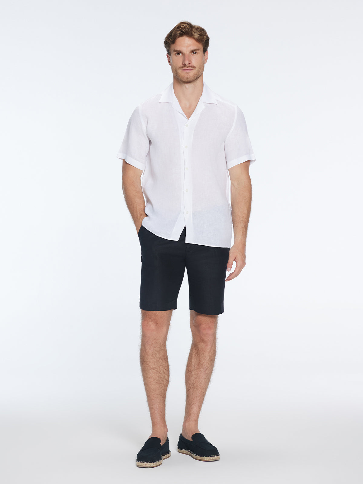 Romeo White Linen Shirt with Camp Collar