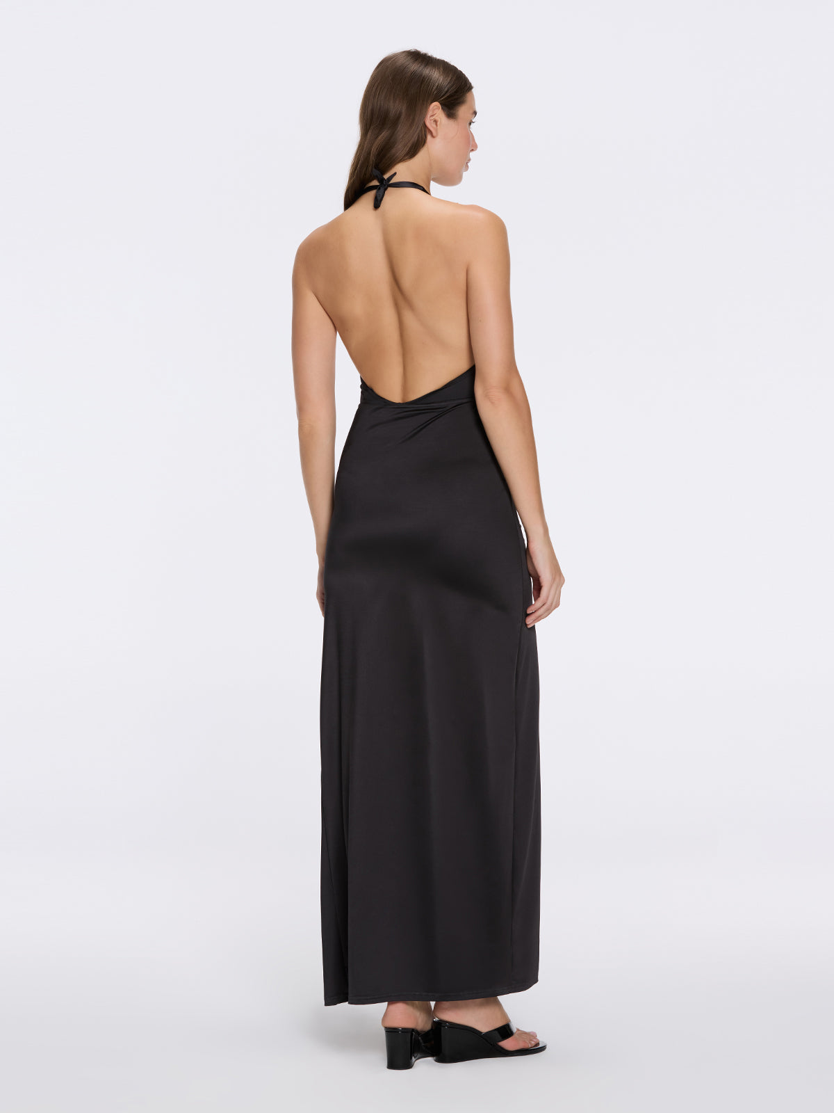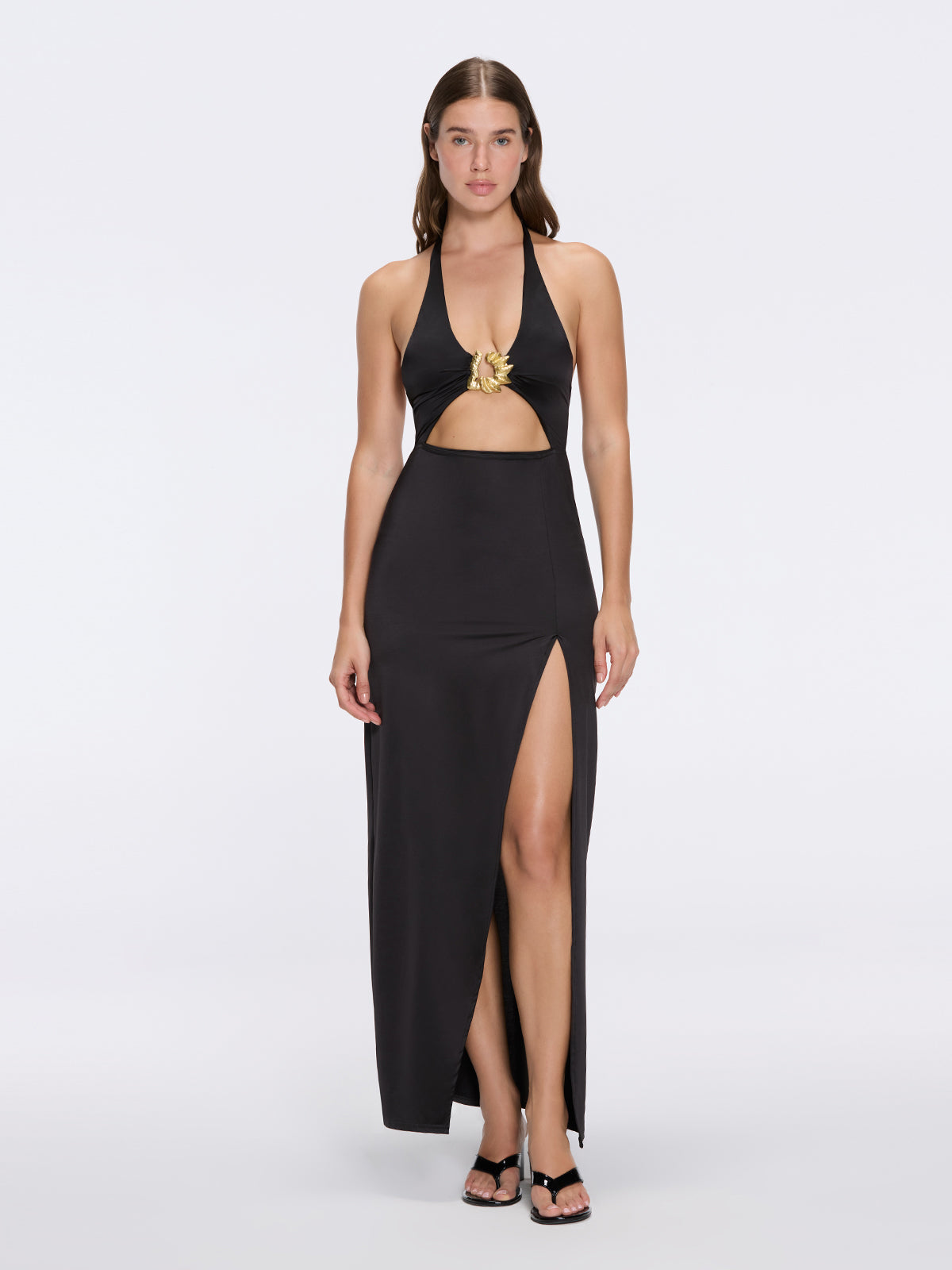 Serres Satin Black Halter Maxi Dress with Cut-Out and Gold Detail | Moeva | Dress | Each week unveils new pieces—luxury swimwear, fluid resort silhouettes, and elevated summer-to-evening essentials designed to carry you from coastal escapes to city nights.