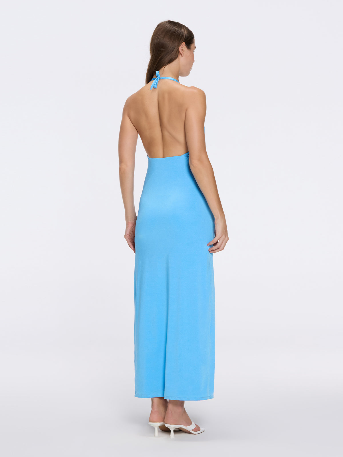 Serres Satin Blue Halter Maxi Dress with Cut-Out and Gold Detail | Moeva | Dress | Each week unveils new pieces—luxury swimwear, fluid resort silhouettes, and elevated summer-to-evening essentials designed to carry you from coastal escapes to city nights.