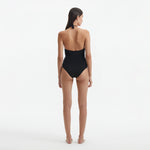 Güzelliğinizle herkesi büyülemek için Imelda'nın altın dokunuşlu siyah tek parça mayosunu satın alın.
